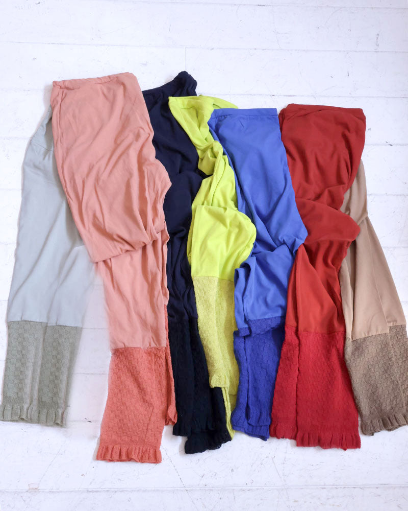 綿100%ニット: 綿52%ポリエステル48%サイズ0:ウエストゴム上がり32cm ヒップぐるり84cm 脇丈93cmサイズ1:ウエストゴム上がり34cm ヒップぐる...
