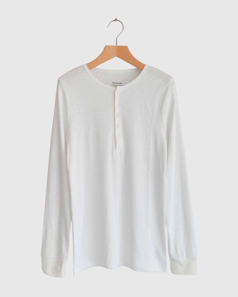 細かなリブが入った伸びのある馴染み良い着心地のカットソー。インナーとしても1枚でも安心感のある肉感とフィット感です。日本製