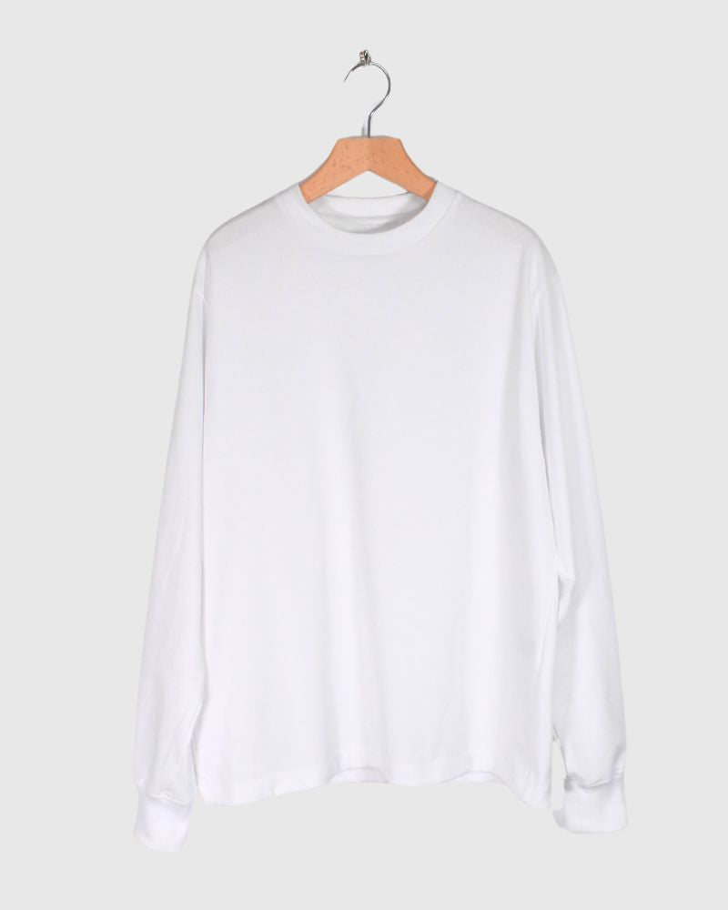 軽く、ドライでナチュラルな質感の生地を使用したロングスリーブTEEです。度詰めで編み立てているので型崩れしにくい素材です。インナーとしても着用しやすいよう袖口はリブ仕様になっています。日本製