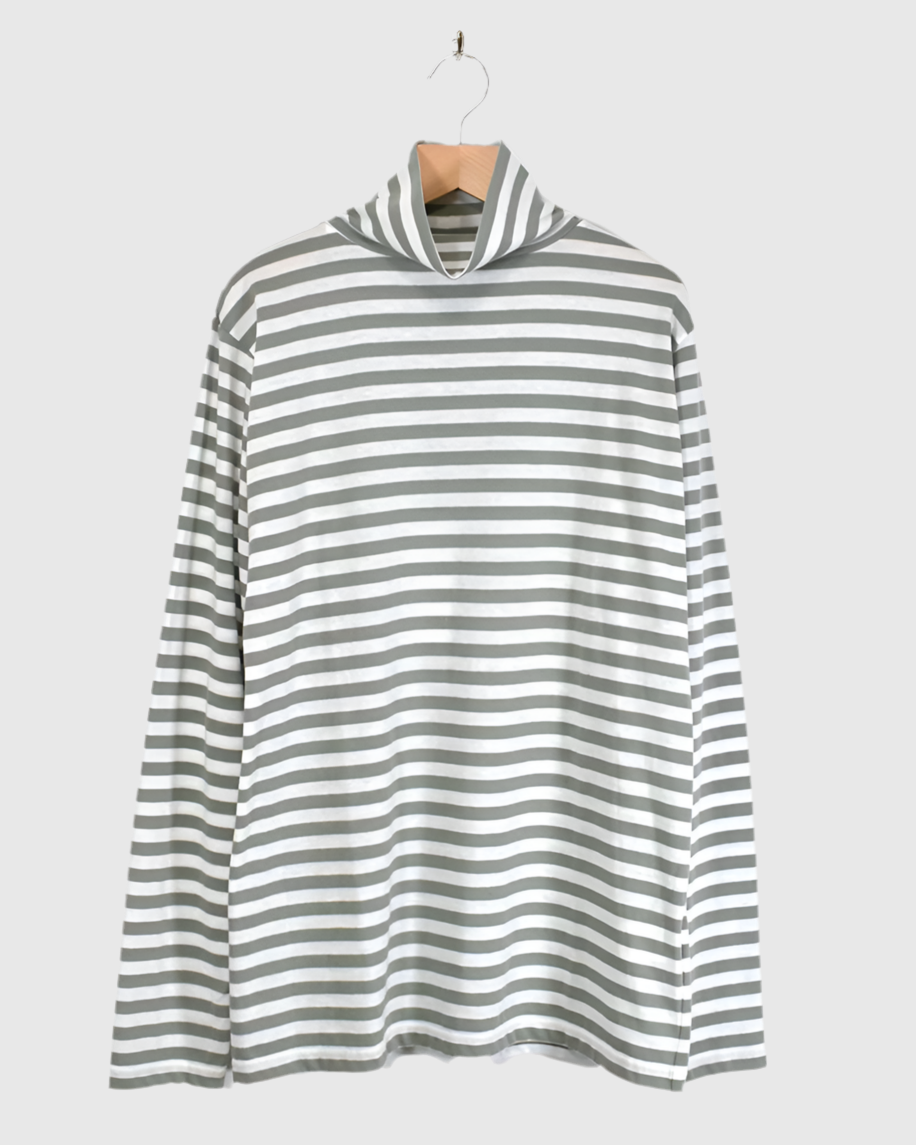 メキシコ産のタコスコットンを使い、先染めのボーダー柄を少し目を詰めて、丁寧に編み上げています。糸にはふっくらとしたふくらみがあり、やさしい風合いが魅力。ほどよい厚みとハリ感があるので、型くずれしにくく、きれいなシルエットをキープし...
