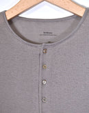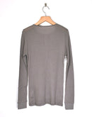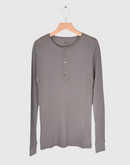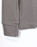 カシミヤ混の細番手糸を使用し、ヘンリーネックの長袖カットソーをお作りしました。カシミヤの柔らかい肌触りと光沢感を持ちながら、とても軽くガーゼのような風合いです。ふわっと柔らかく軽い裏毛素材なので、カジュアルすぎずに着こなして頂けます。