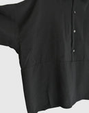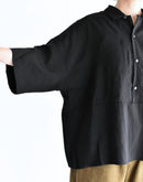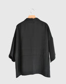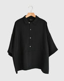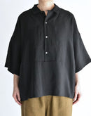 トルコのインポート素材である上質なモダール混生地を使用し、滑らかでとろみのある風合いが美しいドレープを描くオーバーシャツ。ウエストの切り替えがさりげないアクセントになったプルオーバー仕様で、肌離れのよいゆったりとしたボックスシルエットが、涼やかで心地よい着用感を叶えてくれます。オープンカラーとしてはもちろん、ボタンを留めてシャツカラーのようにも楽しめる、大人の抜け感漂う一着です。日本製