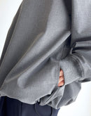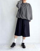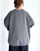 トルコの老舗生地メーカー KIVANC社 で製作された、薄手のトロピカルウール素材を使用したプルオーバー。 すっきりとした表面感と落ち感のある生地が上品な印象を与え、季節を問わず快適に着られる一枚です。 ゆったりとしたボックスシルエットに、ネックと袖口のリブがほどよいアクセント。 裾にはドローストリングを配し、絞ることでフォルムの変化を楽しめます。 両サイドのポケットも嬉しいポイント。 ミニマルでユニセックスなデザインは、パンツにもスカートにも好相性。 軽やかさとリラックス感を兼ね備えた、日常に寄り添うプルオーバーです。 日本製。