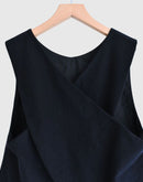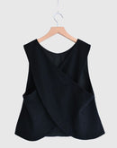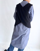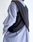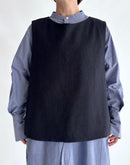 ふんわりとした起毛感とぬくもりのあるフラノウール素材を使用したベスト。 軽やかでやわらかな生地は、秋冬のレイヤードにぴったりです。 フロントはすっきりとシンプルに、バックスタイルは大きくクロスしたデザインが特徴。 立体的なシルエットが自然なドレープを生み出し、 着るだけでスタイリングに奥行きを与えてくれます。 内側にはコットンの裏地を施し、肌あたりもやさしく快適な着心地。 シャツやブラウス、ワンピースの上から重ねるだけで、 シーズンムードを高めるレイヤードスタイルが完成します。日本製