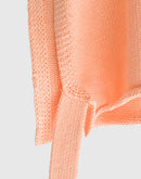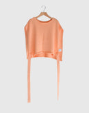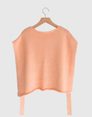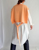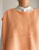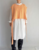 柔らかな風合いが魅力のコットン100%ニットベスト。毛羽立ちを抑え、上品な光沢感を与える「シルケット加工」を施した糸を使用し、ナチュラルでありながら洗練された雰囲気に仕上がっています。 前後どちらでも着用できる2WAY仕様で、着こなしの幅が広がります。サイドにあしらわれたリボンは結び方次第でシルエットを変化させることができ、スタイリングにアクセントをプラス。シンプルながらもディテールにこだわった一枚です。
