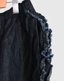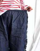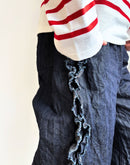 着用を重ねるごとに、インディゴ染めや断ち切りフリルの表情の変化も楽しめます。