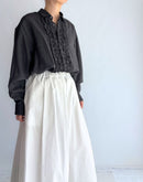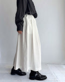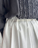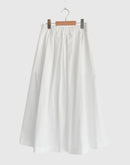 柔らかなツイル生地を贅沢に使い、たっぷりとしたタックで立体感を出したフレアスカート。 ウエストは総ゴム仕様で、ドローコードによるサイズ調整も可能。 動くたびにふわりと揺れるシルエットが、女性らしい上品さとリラックス感を演出します。 両サイドには便利なポケット付き。 シンプルながらも存在感のある一着で、カジュアルからきれいめまで幅広く活躍します。