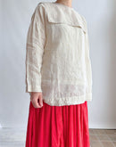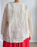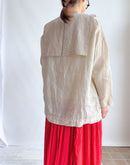 オーガニックベルギーリネン100%の生地を製品染めし、アンティークのような風合いに仕上げたシンプルなプルオーバー。柔らかく自然な質感とリラックス感のあるシルエットが魅力で、肩の落ちたラインや裾のスリットなどさりげないディテールが重ね着にも心地よく寄り添い、季節を問わず活躍する隠れた名脇役です。日本製