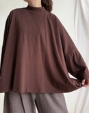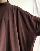 十分に身巾をとったワイドシルエットで脇の落ち感が特徴のTOP。 滑らかで軽いコットン素材を使用し、綺麗にドレープが出るカットソー。 肩巾は肘くらいまで続くドロップショルダーで、短丈袖がポイントです。 シンプルなデザインで上品な印象のモックネックにしたことで、カジュアルすぎない1枚で気軽に着用して頂けます。